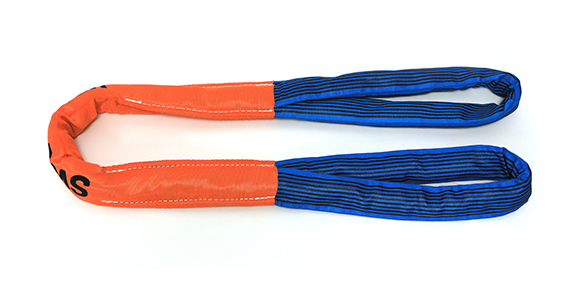 라운드슬링 크레인 바 라운드 슬링 양쪽에 아이형의 고리를 만들고 몸통 부분에 길이방향으로 박음질을 하여 만든 제품입니다.